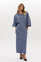 Юбка выполнена из трикотажного полотна. Юбка прямого силуэта, длиной миди, на цельнокроенном поясе с эластичной тесьмой. Сзади разрез в среднем шве.