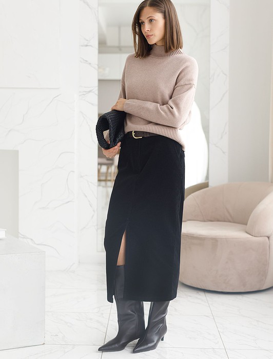 Состав: 98%Хлопок 2%ПУ Плотность: 310 Г/м2 Размер товара на первом фото: 42Юбка прямого кроя с выполнена из мягкого хлопкового микро-вельвета с добавлением эластана. Модель дополнена высоким разрезом спереди. Изделие комфортно садится по фигуре и не сковывает движения. Хорошо комбинируется с вязаным трикотажем, блузками и денимом. Также прекрасно станет альтернативой деловым низам в нестрогом офисном дресс-коде.