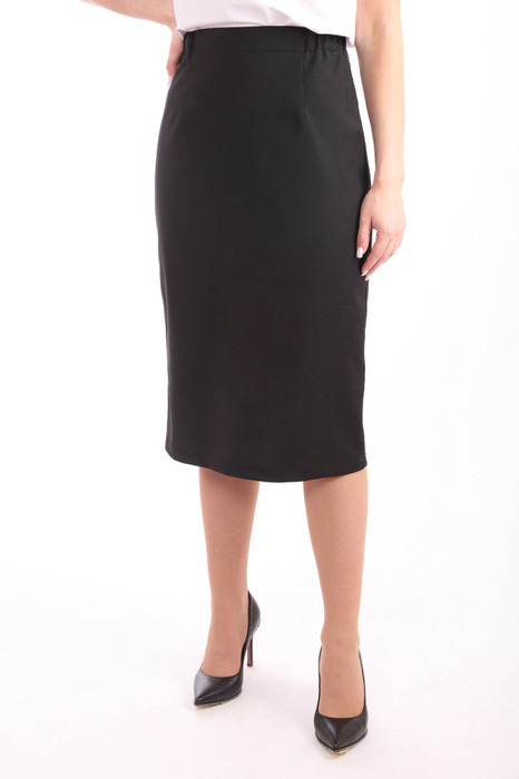 Отличная базовая теплая вещь для осеннего гардероба. Юбка- карандаш на подкладке, пояс в юбке с резинками в области боковых швов для лучшего прилегания. Застежка по спинке на тесьму-молнию. Средний шов спинки заканчивается шлицей. Боковые швы декорированы отделочной тесьмой. Юбка с лампасами хорошо сочетается с повседневным образом и может быть дополнена к офисному стилю. Рекомендуем юбку комплектовать с жакетом КВ88. При покупке комплекта-двойки (юбка + жакет) КВ 8819 или комплекта-тройки (юбка + жакет + футболка) КВ 8819-550, вы можете существенно сэкономить.