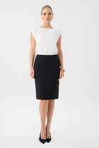 Юбка длиной миди прямая на резинке. Разрез по переду. Изделие без подкладки.