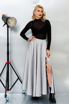 Женственная юбка силуэт трапеция длины миди. По переду заложены встречные складки. Имеются боковые карманы. Эта модель подчеркивает стройность фигуры и слегка приоткрывает ножку.