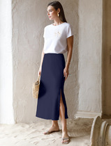 Vilatte Юбка из плотного лиоцелла скроенная по косой D26.197 темно-синий