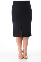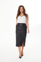 27.03 Vilatte Юбка миди с разрезом из струящегося плотного сатина D26.205 черны