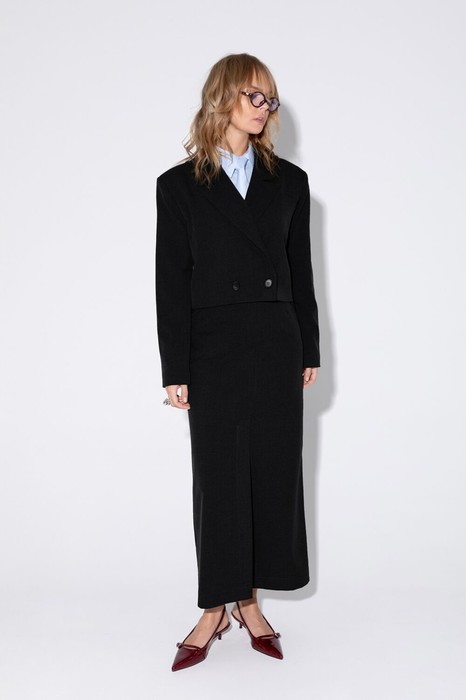 Детали: притачной пояс со шлевками, талиевые вытачки, боковые карманы, застежка на потайную молнию, юбка на подкладке.