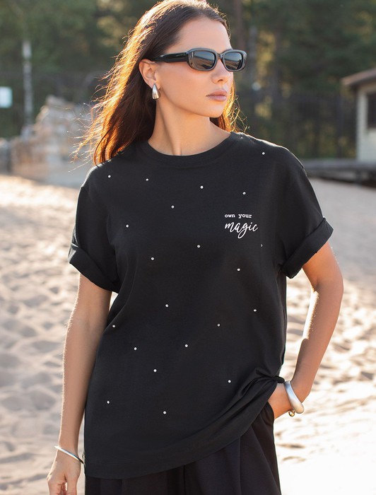 Совместные покупки Уфа Женская одежда Футболки — Удлиненная футболка over-size с принтом стразами
