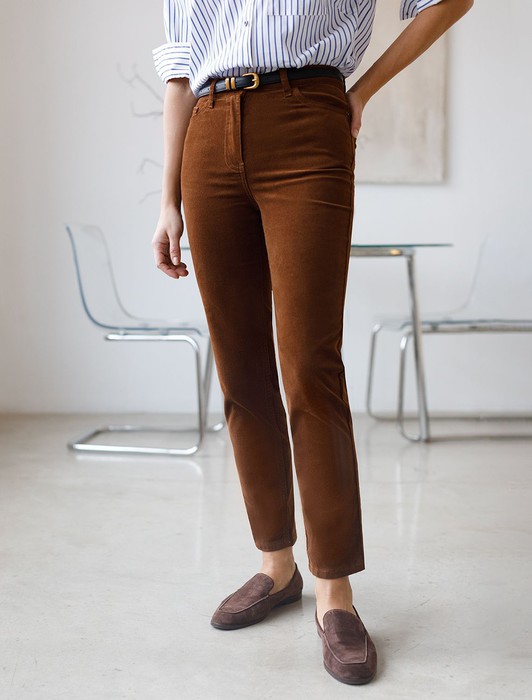 Укороченные эластичные брюки слим из микро вельвета
