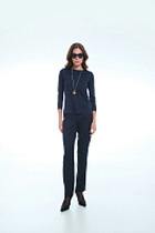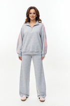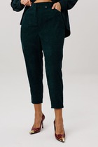 Стильные женские брючки на поясе с завышенной линией талии. Модель прямого кроя, на поясе — молния с клепкой, по бокам вшита резинка, имеются два боковых кармана.