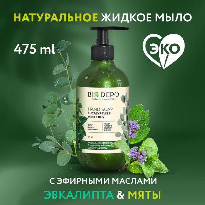 Натуральное мыло для рук с эфирными маслами эвкалипта и мяты эффективно очищает и не сушит кожу рук.