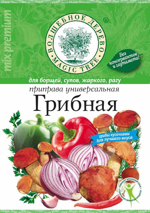 Новая приправа универсальная "Грибная" содержит овощи, травы и пряности в оригинальном сочетании, а также кусочки сушеных грибов для придания Вашим блюдам грибного вкуса и аромата