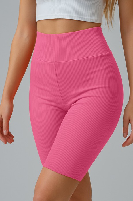 Широкая эластичная резинка нежно прилегает и не сдавливает живот. Благодаря облегающему крою малиновые велосипедки в рубчик повторяют каждое движение тела.