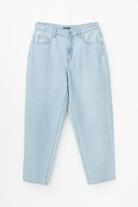 Женские джинсы из 100% хлопка свободного кроя, зауженные книзу, с эффектом выбеленности и завышенной линией талии. Модель с классическими 5 карманами и фирменной нашивкой из эко кожи Very Neat.