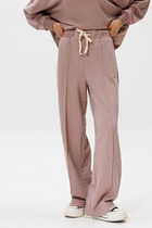 Брюки прямого свободного кроя с боковыми карманами из набивного трикотажа супрем.