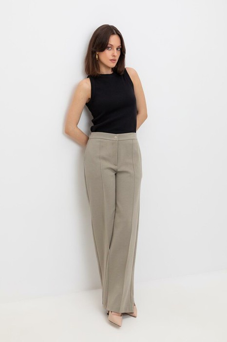 Свободные женские брюки с боковыми карманами из плотного гладкого трикотажа интерлок. Застегиваются на молнию и кнопку.Низ обработан плоскими швами.