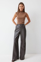 Свободные женские брюки со стрелками и боковыми карманами из плотного гладкого трикотажа интерлок. Застегиваются на молнию и кнопку. Низ обработан плоскими швами.