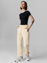Брюки свободного силуэта со стрелками из мягкого двухцветного футера. Внутренняя сторона изделия представлена в натуральном цвете хлопка, внешняя в нежно-розовом. За счет использования крашенной пряжи, данный вид полотна прошел минимальную обработку, что придало изделию мягкость и шелковистость.