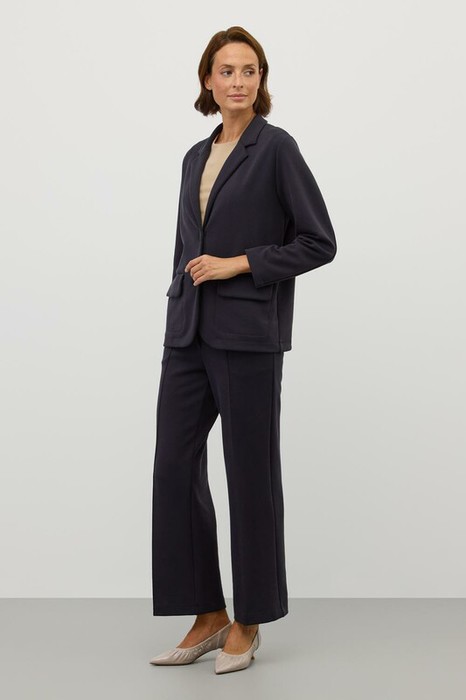 Брюки со стрелкой изготовлены из инновационного трикотажного материала, известного как рибана DOUBLE FACE. Это полотно характеризуется уникальной вязкой, что придает ему исключительную эластичность и мягкость. Современный силуэт и сдержанный дизайн делают их универсальным выбором для самых разных мероприятий — от деловых встреч до непринужденных прогулок по городу.