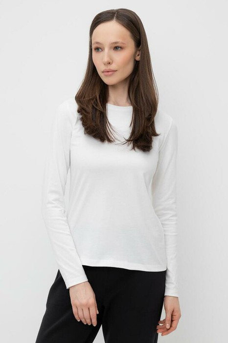 Базовый лонгслив из плотного однотонного трикотажа супрем с добавлением спандекса.