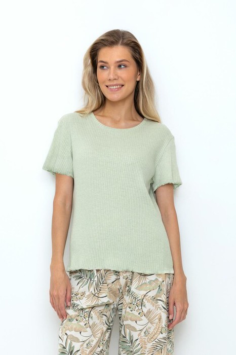 Комфортная футболка из трикотажного полотна в рубчик и эффектом меланжа.