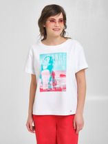 Свободная футболка из набивного трикотажа супрем. Спущенное плечо придает изделию свободный силуэт.