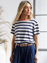 Vilatte Футболка из премиального хлопка с эластаном D49.989 белый-т.синий полоса