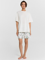 Комплект для комфортного сна и отдыха. Футболка с короткими рукавами, спущенной линией плеча и принтом комфортно садится по фигуре. Шорты с мягким поясом на резинке. В поясе шорт атласная лента. Свободный силуэт не сковывает движения.