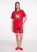 Легкий комплект для комфортного сна и отдыха из натурального хлопка. Футболка с карманом и спущенной линией плеча комфортно садится по фигуре. Брюки с поясом на резинке выполнены из набивного трикотажа. Гладкий материал приятен к телу и позволяет коже дышать.