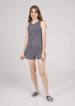 Комплект для комфортного сна из трикотажного полотна с набивным рисунком. Майка из эластичного трикотажа с добавлением лайкры в рубчик. Брюки с мягким поясом на резинке удобно садятся по фигуре. Гладкий материал приятен к телу, не теряет форму и позволяет коже дышать.
