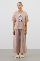 Комплект из хлопка с добавлением нежнейшего модала. Свободный силуэт и мягкий пояс обеспечат комфорт во время сна и отдыха.