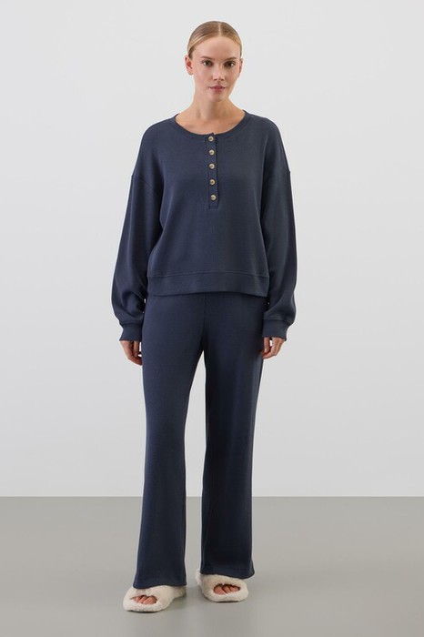 Комплект из объемного трикотажа с добавлением эластичных волокон. Свободный крой обеспечивает легкость и свободу движений.