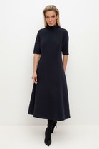 Платье на запах с воротником из плотного набивного трикотажа интерлок. Модель с длинными объемными рукавами. С помощью пояса можно регулировать посадку и силуэт.