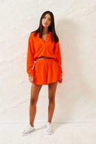 Удлиненные женские шорты из плотного гладкого трикотажа интерлок с удобными боковыми карманами и застежкой на молнию и кнопку. Низ обработан плоскими швами.