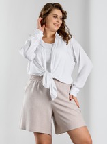 Женские шорты из футера на резинке с удобными карманами наизнанку. Пояс утягивается по ширине круглым шнуром. Низ обработан плоскими швами.