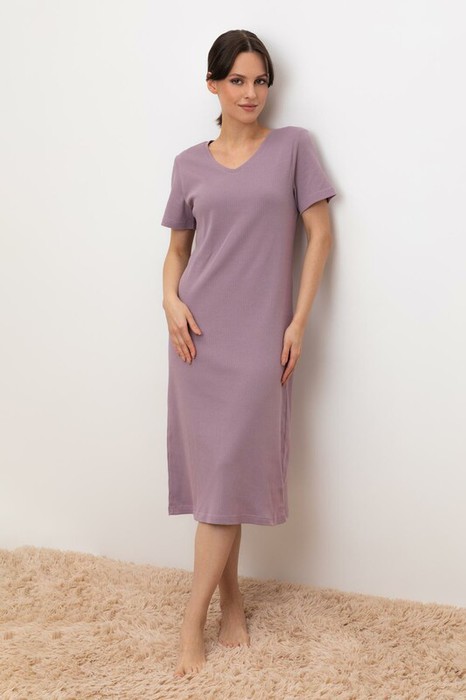 Комфортная сорочка с короткими рукавами из трикотажа в рубчик.