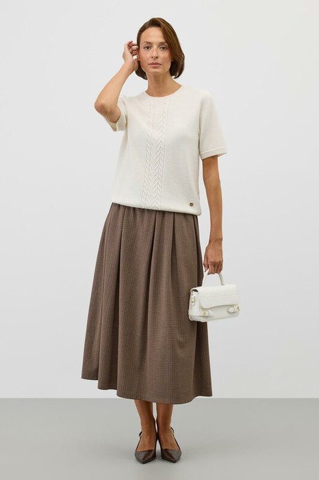 Юбка в складку выполнена из инновационного высококачественного трикотажного полотна DOUBLE FACE, который сочетает в себе мягкость натуральных волокон и долговечность современных технологий. Мягкая резинка на поясе обеспечивает комфортную посадку без ощущения давления и дискомфорта.