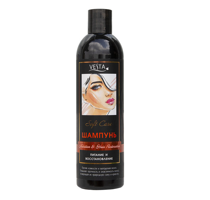 Шампунь Vesta SOFT CARE "Nutrition and hair restoration" обеспечивает надежную защиту, питание и восстановление структуры поврежденных волос, способствует улучшению их состояния после окрашивания, механического или температурного воздействия. Укрепляется структура волос, они становятся блестящими, упругими, имеют здоровый ухоженный вид. Подходит для всех типов волос и ежедневного использования.