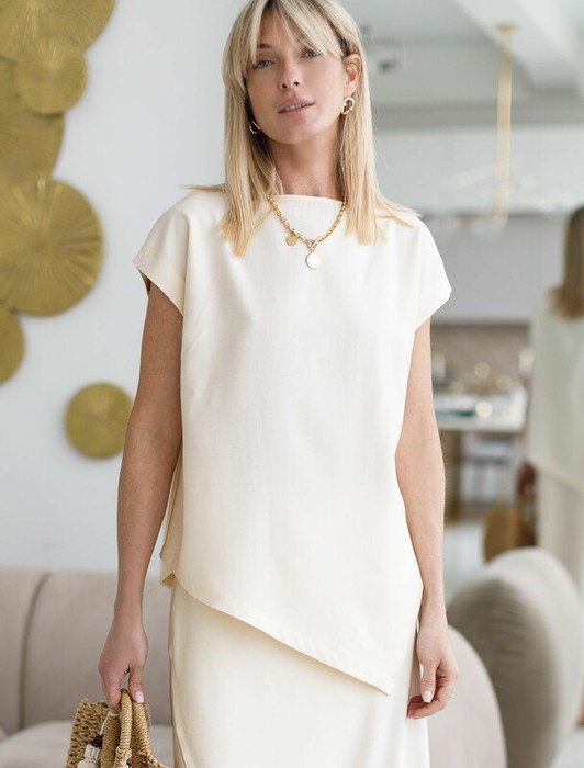 Совместные покупки Уфа Женская одежда Майки, топы — Vilatte Ассиметричный топ из плотного лиоцелла D23.058 кокосово-молочный