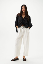 Блузка выполнена из премиальной вискозы и лиоцелла. На спинке изделия фирменный логотип бренда. Застежка на пуговицы из натурального перламутра. Приятная на ощупь ткань охлаждает кожу в жаркую погоду. Отлично впишется в нестрогий офисный дресс-код или в расслабленном повседневном образе с джинсами.