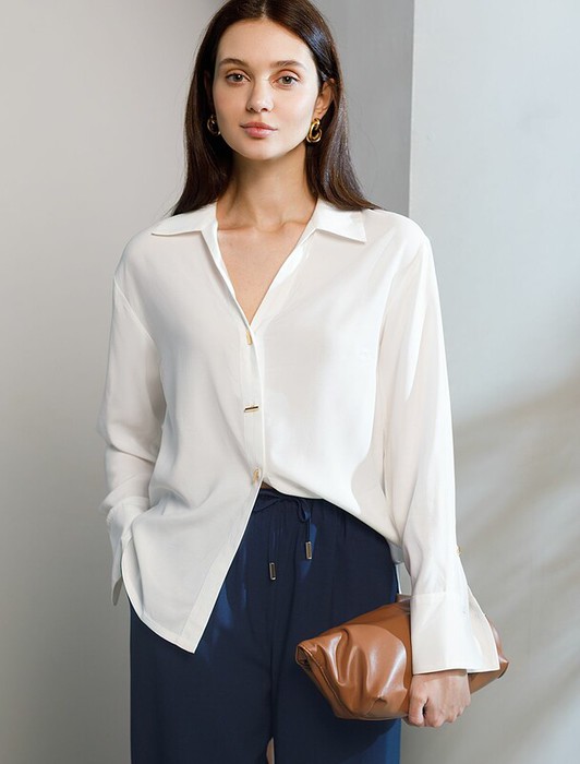 — Vilatte Блузка с широкими манжетами из вискозы с лиоцеллом D29.346 натуральный б