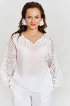 Vilatte Блузка свободного силуэта с золотистыми пуговицами D29.274 белый-синий