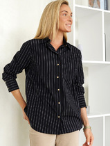 Совместные покупки Уфа Женская одежда Блузки, рубашки — Vilatte Блузка свободного силуэта с золотистыми пуговицами D29.274 черный-белый