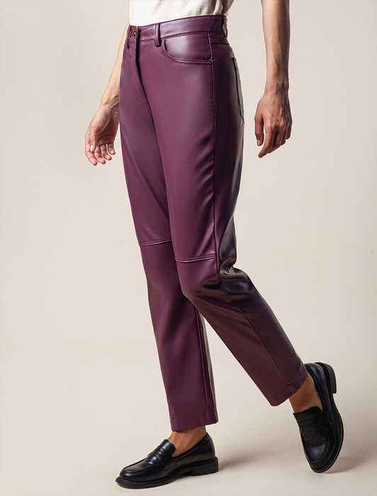 Черные прямые брюки с поясом со шлевками для ремня выполнили из формоустойчивой эко-кожи. Этот эластичный материал не уступает в прочности натуральной коже и легко тянется, не мешая движениям. Бархатистая внутренняя сторона брюк очень приятна к телу, держит тепло и создана для ощущения полного комфорта. Настоящий маст-хэв в прохладное время года, ведь таким брюкам не страшна любая погода. Модель легко сочетается с любым верхом и обувью.