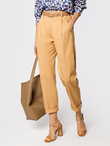 Удобная посадка подчеркивает фигуру, а свободный крой создает эффектную форму "мом". Особый шов сзади без отстрочки добавляет лаконичность дизайну. Брюки не сковывают движений и приятны к телу. Универсальная коричневая расцветка легко комбинируется с любым верхом – от объемных свитеров до облегающих топов. Идеальный вариант для создания как повседневных, так и более нарядных луков с ноткой дерзости. Практичный материал не мнется и устойчив к износу, делая эти брюки must-have в вашем гардеробе.
