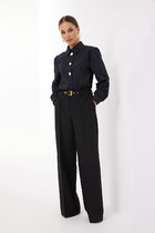 Брюки-палаццо выполнены из фактурной черно-серой поливискозы. . Модель дополнена боковыми карманами и отлично подойдет как для строгого делового образа с блузкой и жакетом, так и для более расслабленного с футболкой и водолазкой. Эластичный материал изделия поддерживает оптимальный микроклимат, формоустойчивость и комфорт в течение всего дня.