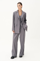 Брюки-палаццо выполнены из костюмной ткани. Свободная модель дополнена карманами и поясом на резинке сзади. Посадка на талии и заутюженные стрелки визуально удлиняют ноги и вытягивают силуэт. Идеальный вариант для офисного дресс кода или в повседневный классический стиль.