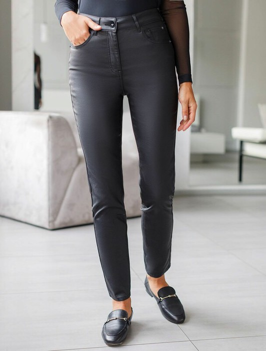 Vilatte Брюки слим из эластичного хлопка с покрытием под кожу D24.273 черный