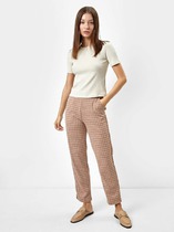Совместные покупки Уфа Женская одежда Брюки — Vilatte Брюки слим из эластичного хлопка с покрытием под кожу D24.273 коричневый