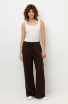 Эти уютные брюки стильного пурпурного цвета созданы для вашего комфорта. Свободный прямой крой обеспечивает свободу движений и максимальное удобство в любых ситуациях, поэтому они подойдут и на большие размеры, а так же на высокий или низкий рост. Фигура подчеркивается, а силуэт визуально вытягивается за счет кроя палаццо и застроченных декоративных стрелок.