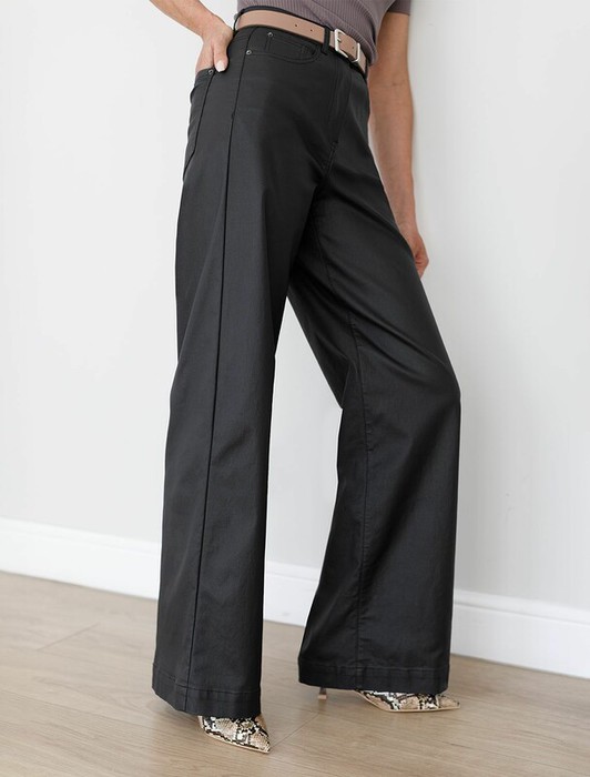 Совместные покупки Уфа Женская одежда Брюки — Vilatte Брюки-трубы из эластичного хлопка с эффектом кожи D24.277 черный