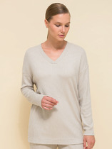 Vilatte Джемпер фактурной вязки из хлопка с кашемиром D39.349 коричневый