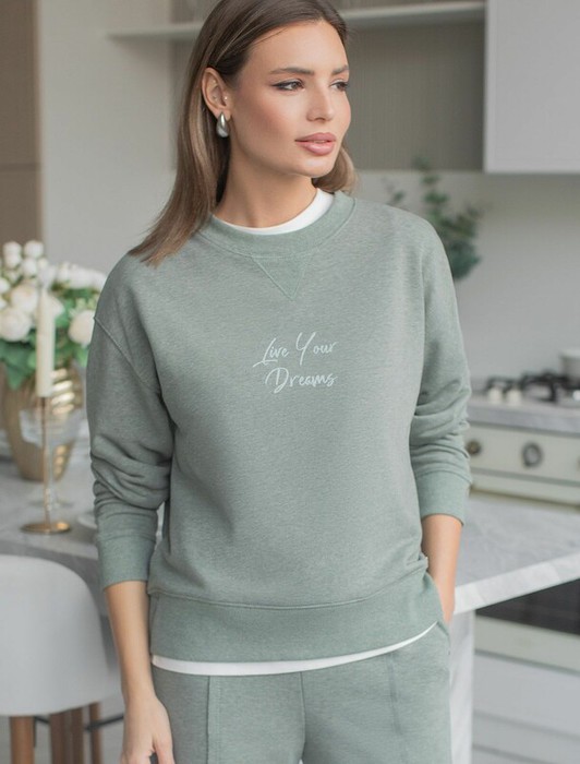 Свободный джемпер с эффектом меланж выполнен из мягкого петельчатого футера двухнитки с добавлением эластана, что обеспечивает комфортную посадку и комфорт. Материал отличается мягкостью и приятной текстурой, позволяя коже дышать и обеспечивая максимальное удобство при носке, а так же хорошей износостойкостью и сохраняет форму даже после многочисленных стирок. Изделие дополнено лаконичным принтом. Круглый ворот и разрезы по бокам придают свитшоту стильный и современный вид и делают образ расслабленным и непринужденным, такой вариант отлично сядет на большие размеры, подчеркивая достоинства фигуры. .Джемпер идеально подходит для повседневной носки и отлично подойдет тем, кто ценит удобство и свободу движений без компромиссов по стилю. Этот свитшот станет отличным выбором в прохладную погоду в комплекте с бомбером D49,141 или уютным дополнением к домашнему образу в комплекте с брюками D44.157